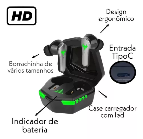 Fone Ouvido Bluetooh Erdots Altomex Gamer Não Cai Da Orelha Cor Preto ou Branco Cor da luz Verde
